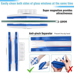 Answer:Ā This magnetic glass wiper is specially designed for single or double glazed windows 3-8mm thickness, and the magnet is strong enough.
